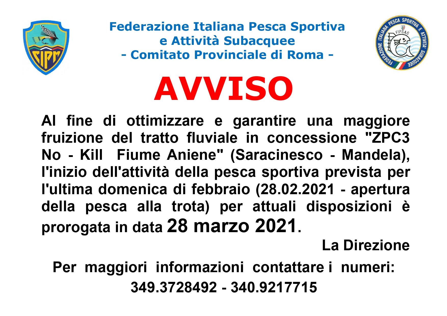 Purtroppo la nostra stagione di pesca sul fiume Aniene sta volgendo al termine. Per questo abbiamo pensato di organizzare una giornata di pesca gratuita per la chiusura. I permessi omaggio sono reperibili presso il ristorante LE ROSCELLE. Per chi volesse a richiesta il CIPM LAZIO presenterà una demo di lancio.