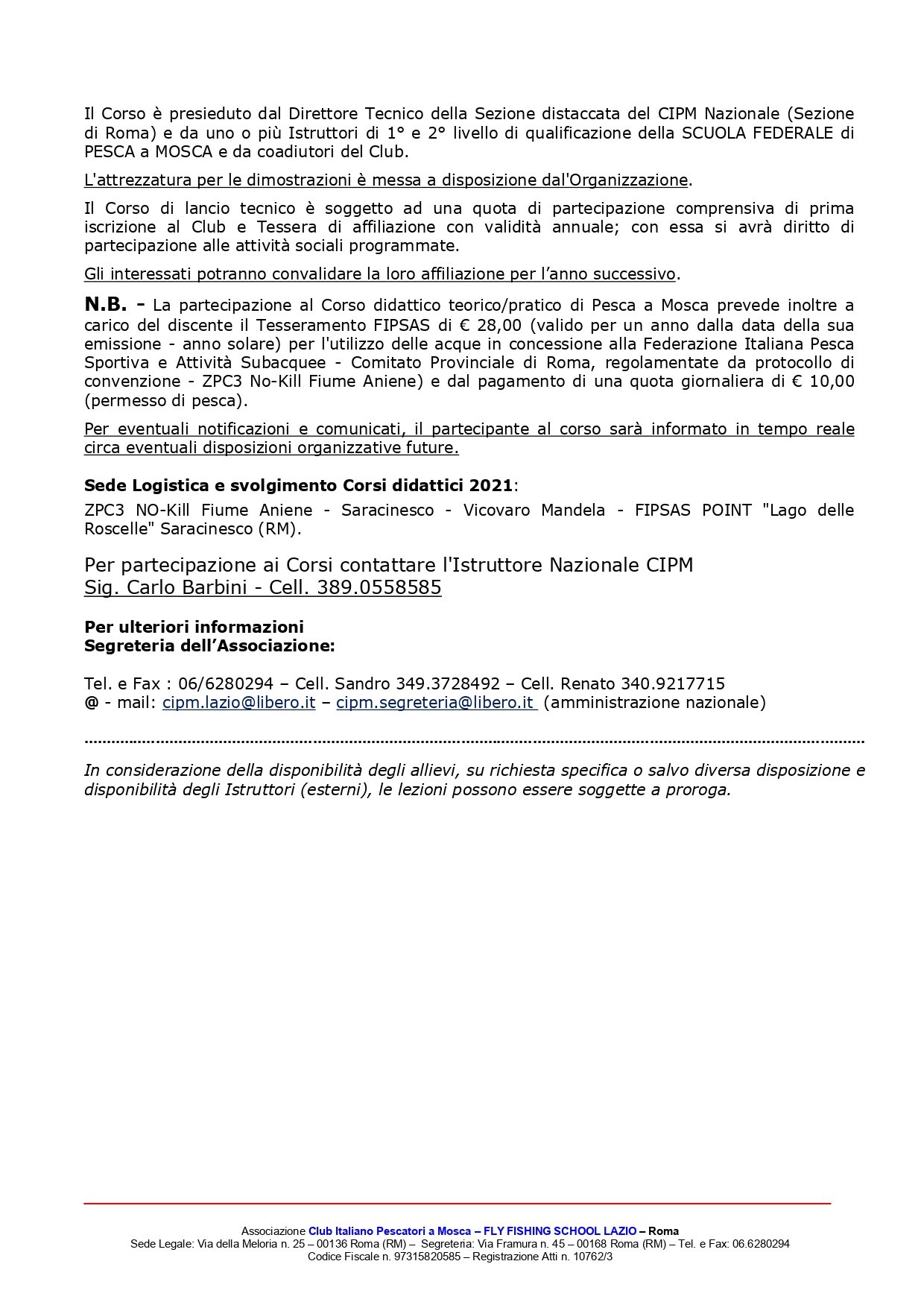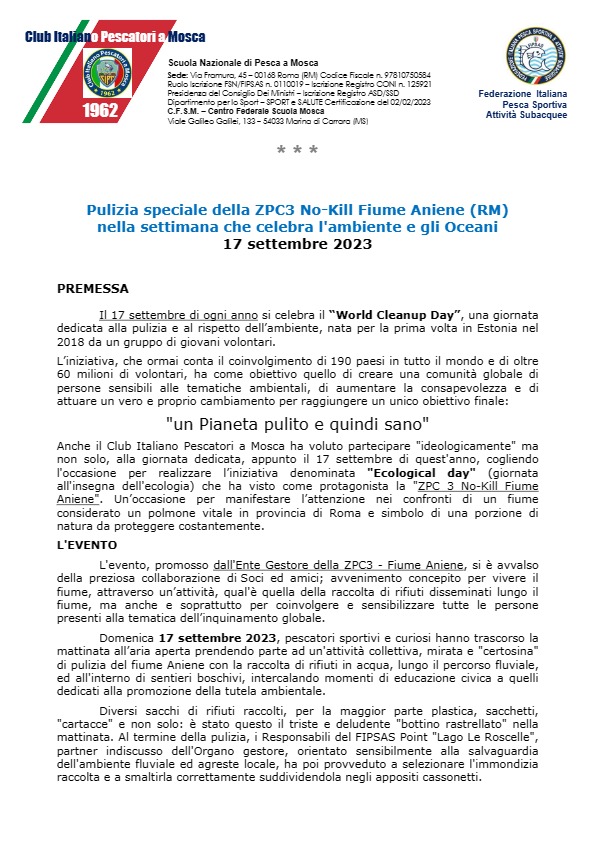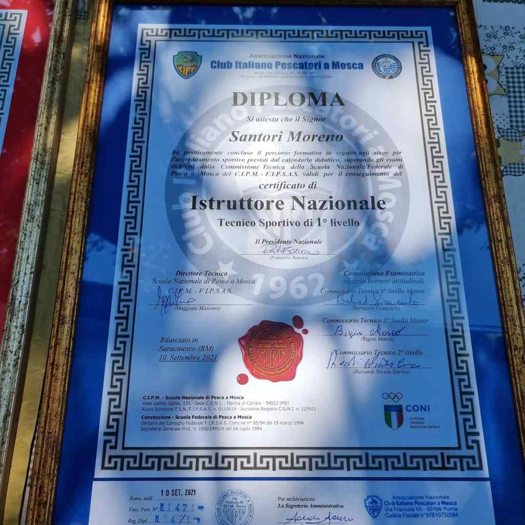 Il giorno 10/09/2021 in località Vicovaro presso il tratto NO-KILL Aniene gestito dal CIPM, si è svolto l’esame pratico teorico per la qualifica di Istruttore Nazionale. A fronte dell’ esame superato egregiamente la commissione tecnica ha deliberato il rilascio dei diplomi attestanti l’abilitazione, e il livello di Tecnico Sportivo riconosciuto dal CONI in materia di insegnamento della pesca con la mosca artificiale. Un augurio speciale va ai due istruttori Barbini Carlo e Santori Moreno che si sono dimostrati competenti e capaci di tramandare questa bellissima tecnica di pesca.